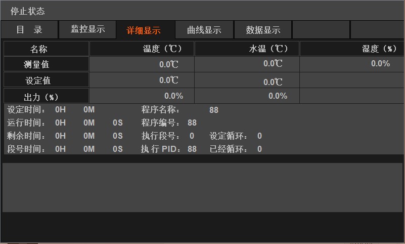 温湿度过程控制调节仪,电脑由客户自行准备。该控制仪采用液晶显示触摸屏,控制系统采用人机对话方式;具有自动、智能、人性化的设计。控制系统采用两路输入、两路输出的控制方式,分别控制温度和湿度,可显示、设定试验参数、程序曲线、工作时间、加热器、制冷机组、风机的工作状态。同时具有试验程序自动运行及PID参数自整定功能;可自动组合加热系统、加湿/除湿系统、制冷系统、循环风机、超温报警等子系统工作,从而保证整个温/湿度控制系统的高控制品质;控制系统还应具备自检测、自诊断功能,自动进行故障显示、报警。