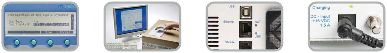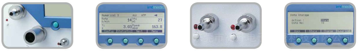 • 8种气体类型支持:Air, Air/O2, N2O/O2, Heliox (21% O2),He/O2, N2, CO2, 自定义气体类型