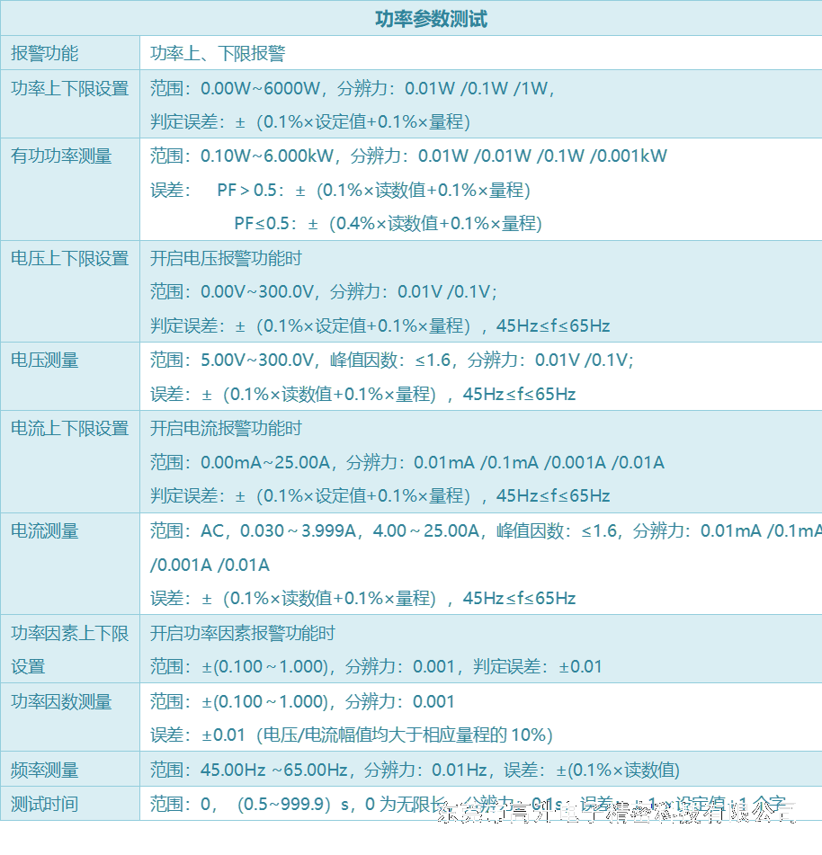 4.测量准:功率0.01W,泄漏0.1μA,有效值/峰值/交流直流分量。