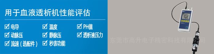多参数测量:温度、电导率、压力、透析液流量、pH值、秒表。