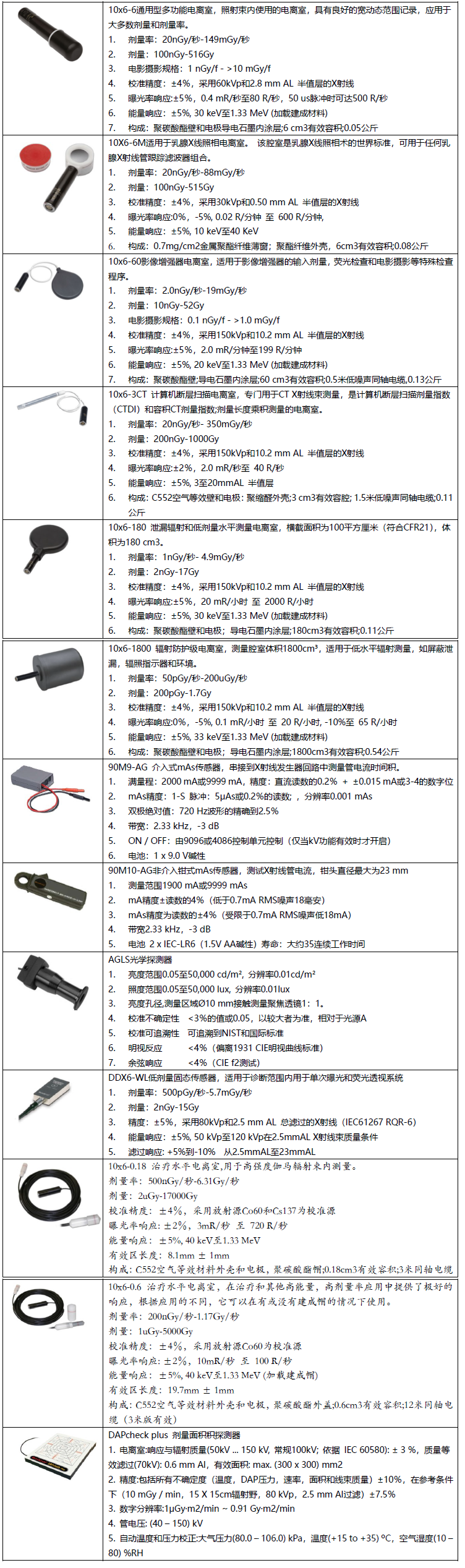 产品简介:用于工业和医学的X射线放射性照相、荧光透视、乳腺摄影、计算机体层摄影CT、牙科放射学等众多用途的辐射输出质量的例行评价。
